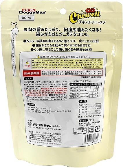 ●リング状に加工した牛皮に鶏むね肉を巻き付けたガムスナック。 ●食べごたえがある大きさ。 ●牛皮加工ガムが芯になっており、しっかり噛める。 ●鶏むね肉を巻き付けることでガムが苦手な子もおいしく長く噛める。 ●保存料、着色料、発色剤、酸化防止剤不使用の無添加良品品質。