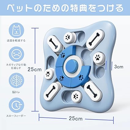 【犬の知能と検索能力を向上させる】犬 知育玩具 犬の脳と嗅覚を訓練し、餌のための16の隠し穴、11のスライドスライダーを設定し、犬は鼻と足でスライダーを移動して隠された餌を見つけることができ、さらに幸せなトレーニングタスク、ボタン音のおもちゃの中心は、楽しさを再生するプロセスを楽しむことができます。 【早食い、健康管理を防ぐ】犬 知育玩具 隠された食品穴は、異なる食品やスナックのために配置することができ、効果的に犬があまりにも多くのおなかを食べることによる緊張と嘔吐を避け、消化を促進し、肥満から遠ざける、犬はゆっくりと訓練を通じて良い習慣を養うようにする。 【運動不足解消】犬 知育玩具 犬は鼻と足を使ってスライドを動かし、隠れたエサを見つけます。そのため、パズル玩具は犬の脳を鍛え、犬の発見と好奇心を満たし、嗅覚反応と知る能力を向上させ、運動不足を防ぎ、屈伸の影響を軽減させることができます。 【安全性と耐久性】:犬 知育玩具 高品質のPP素材で作られているので、作りがしっかりしていて耐摩耗性があり、散らばっても部品が落ちることはありません。また、表面は滑らかで平らでエッジがないため、ペットを傷つけることはありません。 【お手入れ簡単、持ち運び簡単】犬 知育玩具 水ですすぎ、食器洗い機で洗うことができます。日陰でも冷える。サイズは参考値で、外出先にも持っていきやすいサイズです。 多くのペットに対応:子犬/小型犬/中型犬、子猫/小型猫/中型猫に適しています。また、この子犬のおもちゃは外箱として美しい箱に入っており、ホリデーギフトや誕生日プレゼントに最適です。