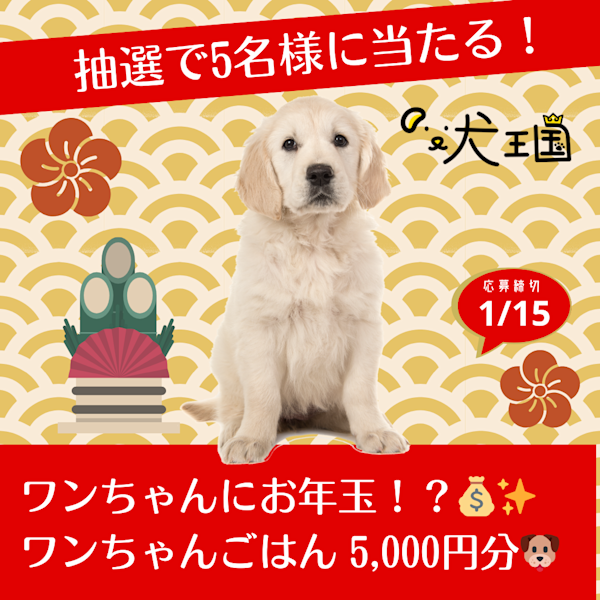 ワンちゃんにお年玉!?🎍お好きなご飯 5,000円分が当た...